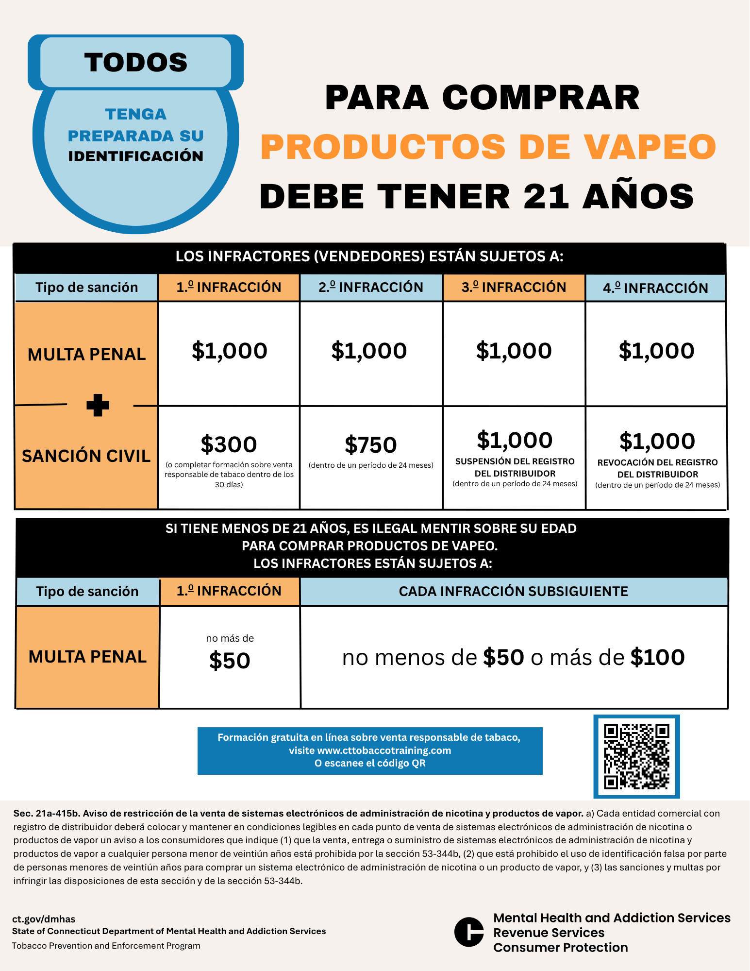 Retailers must post State Notice of Law signs for the products they sell (tobacco or vapor products). Retailers who sell both tobacco and vapor products must post both signs. Signs must be placed at the point of sale.