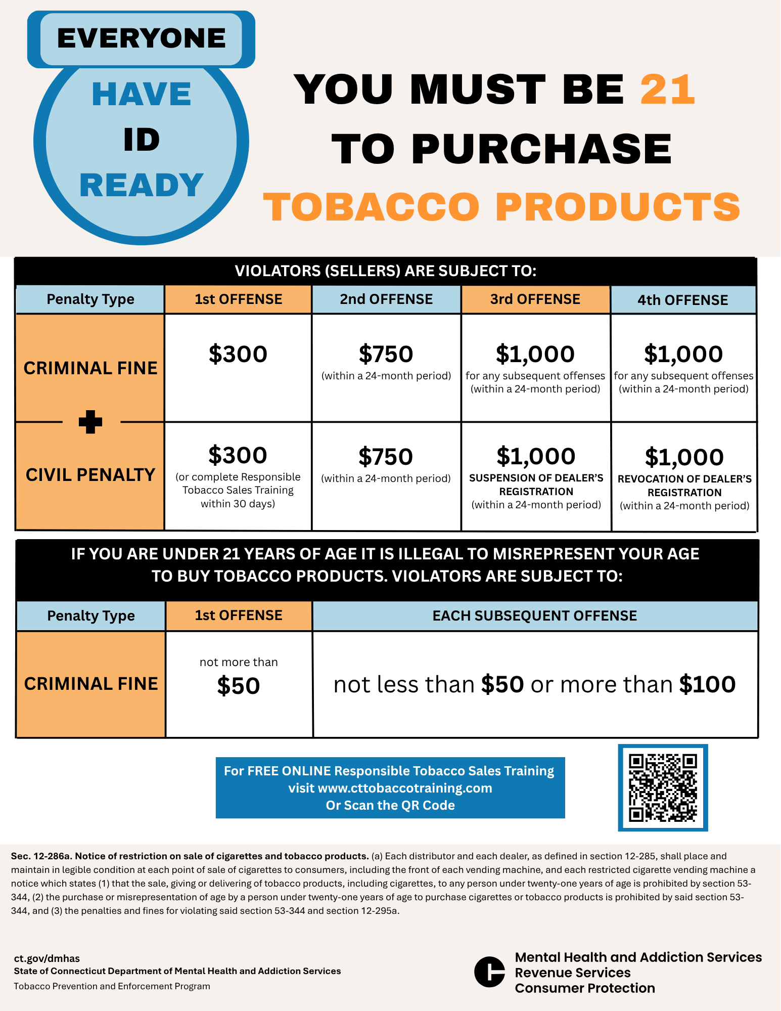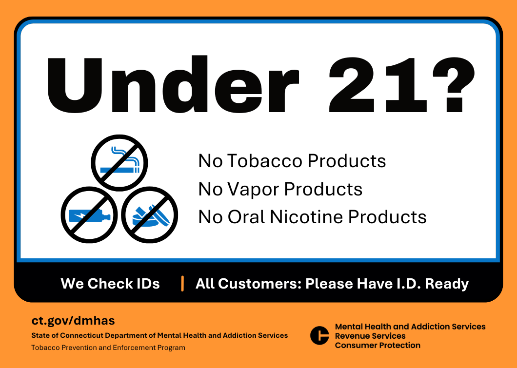Other materials that let customers know that staff will check their IDs include "We ID" buttons and "We ID EVERYONE" face masks. Our messenger pens feature six "messages" about Connecticut's tobacco and vapor laws and are a good reminder for staff.